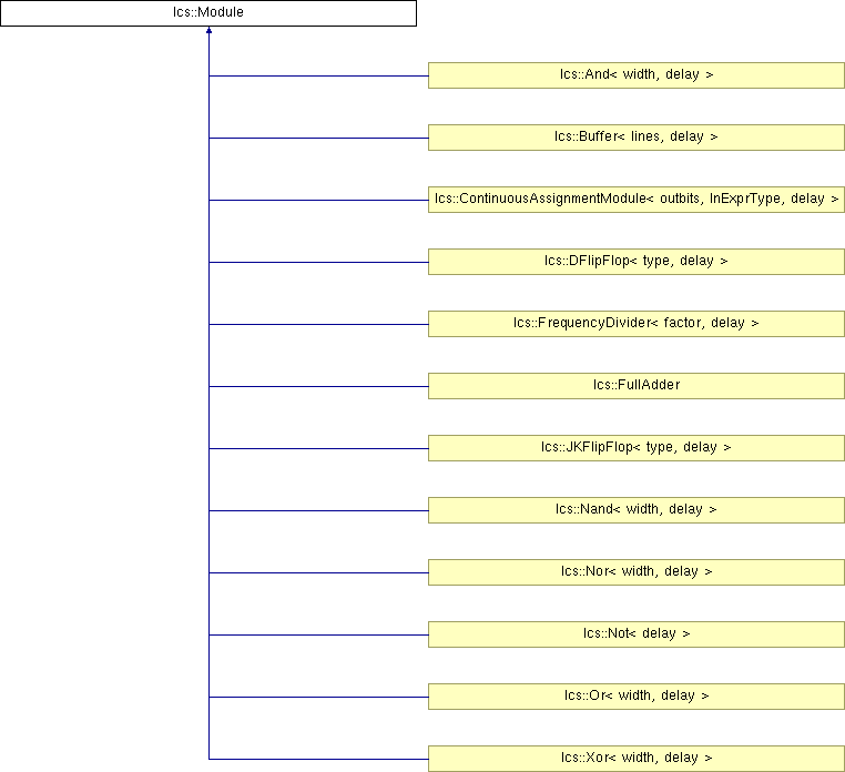 Reimplemented in lcs::And< width, delay >, lcs::Buffer< lines, delay >, lcs::ContinuousAssignmentModule< outbits, InExprType, delay >, lcs::DFlipFlop< type, delay >, lcs::FullAdder, lcs::JKFlipFlop< type, delay >, lcs::Nand< width, delay >, lcs::Nor< width, delay >, lcs::Not< delay >, lcs::Or< width, delay >, and lcs::Xor< width, delay >.