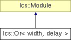 width denotes the number of lines in the input data bus. In other words, the template parameter width denotes the number of inputs to the OR gate. Hence, one can instantiate an N-input OR gate by setting the template parameter value to N. The second template parameter indicates the propogation delay from the input to the output of the OR gate.